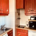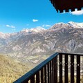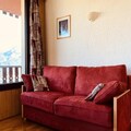 This cozy 2-room apartment, ideal for up to 5 guests, is situated on the 14th floor of a building with an elevator. The apartment features a comfortable living room with a 2-seater convertible sofa (160 cm mattress), flat-screen TV, and access to a corner balcony offering stunning views of the valley. The bedroom includes a double bed and a child-sized bunk bed, with plenty of storage space. The apartment is non-smoking and strictly pet-free, ensuring a clean and comfortable stay for all guests.