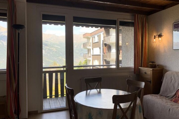 Located in Pra-Loup 1600, this apartment is situated on the slopes, approximately 100m from the shopping mall. This prime location offers convenient access to skiing and shopping amenities. The apartment is on the 3rd floor of a building with an elevator and offers a north-facing balcony with valley views.