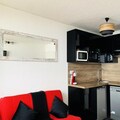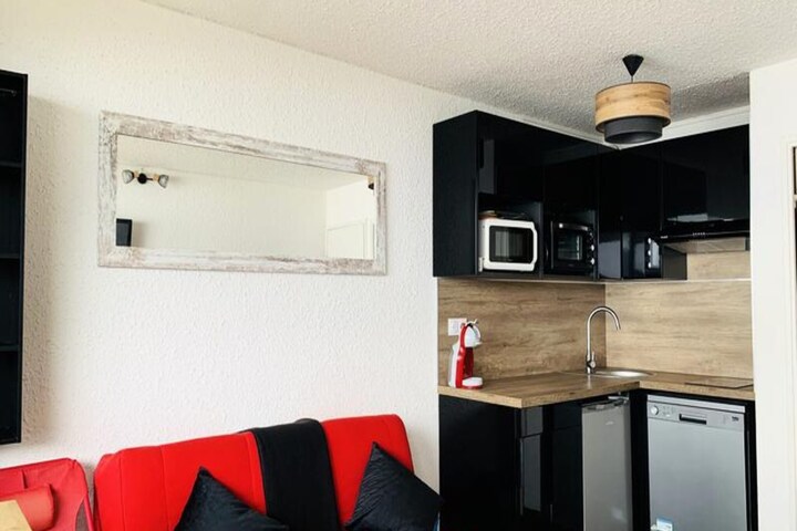 This charming studio apartment, located in a building with an elevator, offers a comfortable stay for up to 4 people. It features a mountain area with two bunk beds and a cozy living room with a double convertible sofa, an HD TV, and a Playstation 3 for entertainment. The apartment is non-smoking and includes electric shutters for added convenience. A deposit of €260 is required upon arrival.