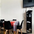 The fully equipped kitchen comes with a microwave, ceramic hob, electric oven, refrigerator with freezer, dishwasher, and even a raclette grill for cozy meals. The apartment also includes a bathroom with a shower cabin, as well as an independent WC. A private ski locker is available for your convenience, making it easy to store your equipment after a day of skiing or hiking.