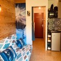 The studio is equipped with a fully functional kitchenette, including a mini oven, microwave, refrigerator, and ceramic hobs, so you can prepare your own meals. A Dolce Gusto coffee maker and toaster are provided for added convenience, and there's even a raclette grill for a cozy evening in. The bathroom features a bathtub and WC, offering a comfortable space to unwind. With all these amenities, this apartment provides everything you need for a relaxing and convenient stay in the heart of the mountains.