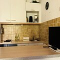 This cozy studio apartment, located on the first floor of a building without an elevator, is perfect for a couple or solo traveler, offering a comfortable stay in a 23m² space. It features a living area with a sofa bed, flat-screen TV, and ample storage, including a cupboard in the entrance corridor. The apartment is non-smoking and pets are not allowed, ensuring a clean and comfortable environment for all guests. A security deposit is required upon arrival.