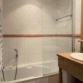 The apartment is well-equipped for a comfortable stay, with a fully functional kitchen area that includes a ceramic hob, oven, microwave, fridge/freezer, dishwasher, coffee maker, and a raclette grill for a true alpine dining experience. The bathroom features a bathtub and sink, while an independent toilet adds convenience. Additional amenities include a private parking space in the residence's garage and a ski box for storing equipment.