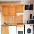 Inside, the apartment is fully equipped for a comfortable stay with an open kitchen, including a ceramic hob, oven, microwave, fridge/freezer, dishwasher, coffee maker, washing machine, raclette machine, and fondue machine. The spacious bathroom features a shower and WC, providing all the amenities needed for a relaxing experience. Whether you're cooking a family meal or enjoying cozy nights in, the apartment provides all the essentials for a memorable vacation.