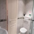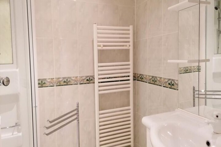 The studio features a well-equipped kitchen area with 2 ceramic hobs, an oven, microwave, refrigerator with freezer, electric coffee maker, kettle, and toaster, allowing you to prepare meals with ease. The shower room includes a shower cubicle and WC. The apartment also benefits from aluminum bay windows and an electric roller shutter for added comfort.