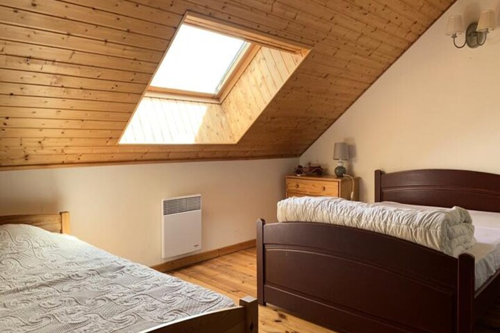 This well-equipped chalet features a living room/lounge with a flat-screen TV, DVD, VHS, and CD player, furnished with numerous beautiful rustic pieces. The kitchen includes a dishwasher, microwave, oven, ceramic hob, fridge/freezer, and both filter and Senseo coffee makers. On the first floor, there are two bedrooms and a bathroom with a shower and WC. The ground floor offers two more bedrooms, a mountain corner with bunk beds, and a shower room with a cabin/shower, WC, sink, and washing machine. Electric consumption is payable upon departure. Heating is included. A deposit is required.