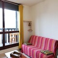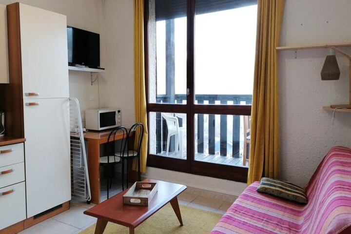 The studio is well-equipped for a comfortable stay, featuring a kitchen area with a fridge/freezer, a combination of gas and electric burners, an oven, and a hood. The shower room has been recently renovated and includes a cabin shower, WC, and a hairdryer. Additionally, a ski box is provided to store your gear. The apartment is fitted with a tiled floor and heating for a warm, inviting atmosphere throughout your stay.