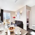 Situated in Pra Loup at an altitude of 1500m, this residence offers a stunning panoramic view of the peaks and a perfect setting for an active and relaxing holiday. The comfortable, bright apartments are fully equipped, featuring a living room with a pull-out sofa bed for two, a kitchen, a bedroom with a double bed, and a bathroom with a shower or tub. Wi-Fi access is included, and pets are welcome for an additional charge. The residence also provides a heated indoor swimming pool, sauna, and hammam, ensuring a rejuvenating stay.
