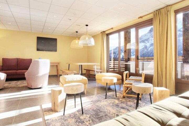 Nestled in the scenic Pra Loup at an altitude of 1500 meters, this residence offers a comfortable and modern stay with breathtaking panoramic views of the surrounding peaks. The apartments, designed for up to 6 people, are bright and spacious, featuring a living room with a pull-out sofa, a well-equipped kitchen, and cozy bedrooms with double beds. Wi-Fi access and a flat-screen TV are included for your convenience, and pets are welcome with prior arrangement.