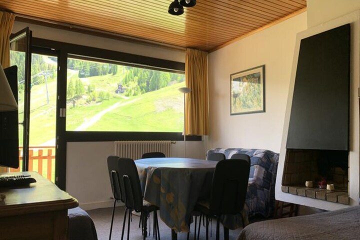 Imagine waking up to the serene sight of snow-dusted slopes right outside your window. This charming ski-in/ski-out apartment in Pra-Loup 1600 offers an unbeatable location for winter sports enthusiasts. Positioned on the third floor of a well-maintained building with an elevator, this cozy retreat is just 70 meters from the bustling shopping arcade and directly in front of the ski school meeting point, making it a perfect choice for families and groups alike. The south-facing balcony provides breathtaking views of the slopes, inviting you to soak in the alpine ambiance from sunrise to sunset.