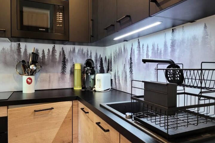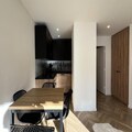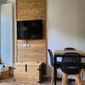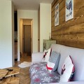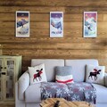Designed to comfortably accommodate up to four guests, the studio features a smart layout that maximizes space and comfort. The entrance alcove includes two snug bunk beds, while the living room boasts a plush double sofa bed, a dining area, and direct access to the balcony. The fully equipped kitchenette invites you to prepare hearty meals after a day on the slopes, complete with an induction hob, oven, microwave, dishwasher, and even a raclette grill for a true taste of the Alps. Modern amenities like an HD TV, washing machine, and towel warmer ensure a hassle-free stay, while the elegant parquet flooring adds a touch of warmth and sophistication.