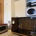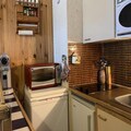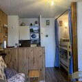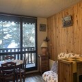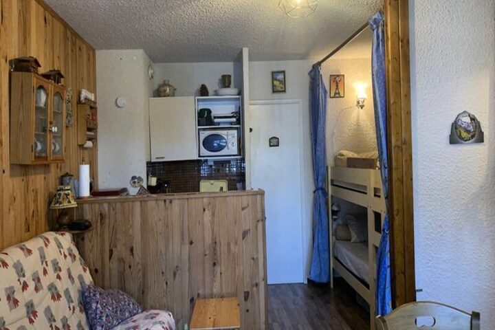 Inside, the studio is thoughtfully designed to accommodate up to four people. The entrance features a bunk bed, while the spacious living room boasts a comfortable sofa bed, dining area, and direct access to the balcony. The kitchenette is equipped with modern amenities, including a Senseo coffee machine, raclette grill, and microwave, making it easy to prepare hearty meals after a day of outdoor activities. The bathroom includes a bathtub and washing machine for added comfort during your stay. A ski locker on the ground floor ensures hassle-free storage of your equipment, while parking at the residence adds further convenience.