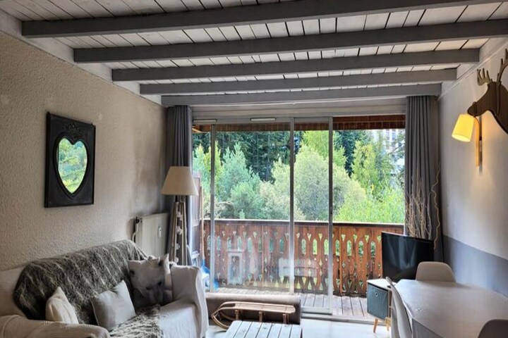 High above the serene valleys of Pra-Loup 1600, this charming studio apartment invites you to immerse yourself in the beauty of the French Alps. With its south-facing balcony offering breathtaking views of the iconic Pain de Sucre mountain, every moment here feels like a retreat into nature’s splendor. Whether you’re seeking a cozy winter escape or a refreshing summer getaway, this property provides the perfect base for your alpine adventures. \n\nDesigned to comfortably accommodate up to four guests, the studio features a practical layout with a sleeping alcove equipped with bunk beds and a living room with a sofa bed. The kitchenette is thoughtfully appointed with modern amenities including a mini-oven, microwave, dishwasher, and coffee maker, ensuring you have everything you need to prepare hearty meals after a day exploring the slopes or trails. The bright and spacious living area opens onto the balcony, where you can unwind with a cup of coffee and soak in the stunning mountain vistas. \n\nLocated just 150 meters from the ski slopes and 50 meters from the lively shopping arcade, convenience is at your doorstep. The Le Portillo building also offers a ski locker for added ease during your stay. In addition to winter sports, the region boasts a wealth of summer activities, from hiking and mountain biking to discovering charming alpine villages nearby. \n\nWhether you’re drawn by the thrill of skiing or the tranquility of mountain landscapes, this studio apartment combines comfort, practicality, and an unbeatable location for an unforgettable holiday experience.