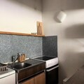The apartment comes with a well-equipped kitchen area, including a refrigerator, electric stove, microwave, filter coffee maker, and toaster, so you can prepare your own meals. The bathroom features a bathtub and WC for your convenience. A ski box is located on level -1, and parking is available nearby for easy access. Heating is provided to ensure a comfortable stay throughout your visit.