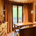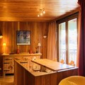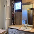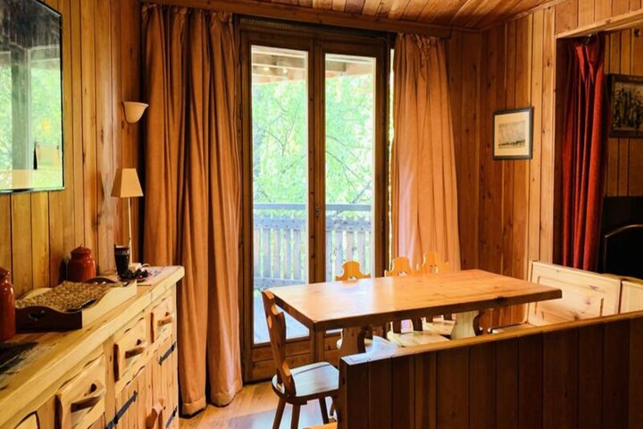 This cozy 2-room apartment, perfect for 4 to 5 guests, offers a warm chalet-style ambiance on the 2nd floor of a building with an elevator. It features a spacious entrance with a single bed, a living room with a convertible sofa, a seated sofa, TV, and DVD/CD players, and a dining area with a large wooden table and corner bench. The semi-independent kitchen is fully equipped with a ceramic hob, dishwasher, refrigerator, oven, and microwave. The bedroom includes two single beds, while the bathroom has a bathtub and washing machine. The apartment also has an independent WC and a south-west-facing balcony. It is non-smoking, and pets are not allowed.