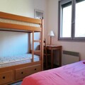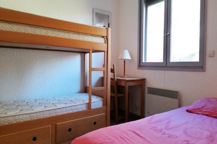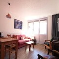 This spacious and well-maintained 2-room apartment is perfect for a family or group of up to 6 people. Located on the 1st floor, it features a cozy living room with a double sofa bed (140x190), HD TV, and a dining area, all leading to a large balcony with stunning views of the valley and mountains. The bedroom is equipped with a double bed (160x200), a set of bunk beds, and ample storage space. The apartment is non-smoking and includes electric shutters for added convenience. Please note, pets are not allowed. The property is also equipped with a ski box and ski room for guests.