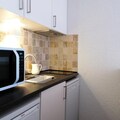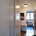 The apartment features a fully equipped open kitchen with a combined microwave oven, refrigerator, ceramic hob, dishwasher, and essential appliances like a coffee maker, kettle, toaster, and even a raclette grill for cozy evenings. The bathroom includes a bathtub, and the WC is separate. With a large wardrobe at the entrance, this apartment is designed for comfort and convenience.