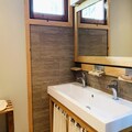 The house consists of three well-appointed bedrooms: one with two single beds, one with a 140 cm double bed, and another with two 90 cm bunk beds. The bathroom has a shower cabin and a double sink, while the WC is separate for added convenience. With plenty of storage space in each room, you’ll feel right at home. Pets are not allowed, and the chalet is non-smoking, ensuring a clean and healthy environment for all guests.