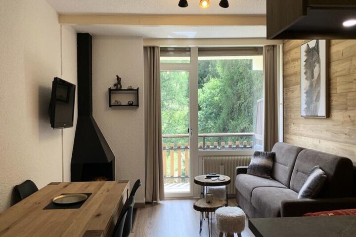This charming studio apartment, located on the 4th floor of a slope-side building with an elevator, comfortably accommodates up to 4 people. The apartment features two bunk beds in the entrance area and a Rapido sofa bed in the living room. It is non-smoking and strictly prohibits pets. Guests can enjoy the beautiful parquet flooring and modern amenities for a pleasant stay in the mountains.