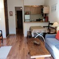 Inside the apartment, you'll find an open kitchen area equipped with 2 ceramic hobs, a fridge/freezer, a microwave, a dishwasher, an electric coffee maker, kettle, and even a fondue set, perfect for preparing cozy meals. The bathroom is well-appointed with a bathtub and washing machine. A separate WC adds extra convenience. For added comfort, a Wi-Fi connection is available for a small fee, ensuring you stay connected during your stay.