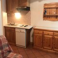 This cozy apartment, located just 150 meters from the slopes, offers a comfortable stay for up to 6 guests. It features a living room with a convertible sofa, a bedroom with a double bed, and a mountain area with bunk beds. The apartment is pet-friendly and equipped with essential amenities like a TV, dining area, and storage space. It is located on the garden level with a small terrace, perfect for enjoying the view. Please note, bed linen and towels are not provided, and cleaning is not included.