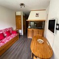 This charming 27m² apartment, ideal for up to 4 guests, is located in a “Ski-in/Ski-out” residence and offers a comfortable stay with great mountain views. The property includes a mountain corner with bunk beds and a pull-out sofa bed in the living area. The apartment is non-smoking and pets are not accepted. Bed linen, towels, and end-of-stay cleaning are not provided but can be rented in advance. The apartment is perfect for those seeking a cozy, well-maintained space to enjoy the slopes.