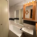 The apartment includes a fully equipped kitchen with 4 electric hotplates, a fridge, freezer, dishwasher, and oven. For relaxation, there’s a comfortable living room with a 3-seater sofa, TV, and balcony access. The renovated bathroom has a bathtub, sink, and a large closet. Additional amenities include a ski locker and private parking with remote control access.