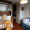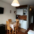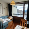 This cozy 22m² ski-in/ski-out apartment, perfect for 2 to 4 people, is located on the 3rd floor of a residence with an elevator. The living area features a convertible sofa, TV, and access to a west-facing balcony with stunning mountain views. A separate mountain corner with bunk beds ensures additional sleeping space. The property is pet-friendly, making it an excellent choice for families traveling with pets. Reserved parking and a ski locker are also available, ensuring convenience throughout your stay.
