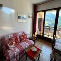 This cozy studio apartment for up to 4 people offers a comfortable stay with a convertible sofa and a mountain corner with bunk beds. The apartment is pet-friendly and located on the first floor, facing south with a stunning view of the surrounding mountains. The space includes essential amenities such as a wardrobe, cupboard, and clothes hooks for storage. A large parking lot is available for residents, and the property is non-smoking throughout.