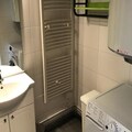 The fully equipped kitchen includes a dishwasher, microwave, refrigerator with freezer, and various accessories for your convenience. The bathroom features a bathtub, a unit with a sink, a washing machine, and an electric wall-mounted towel dryer. There is a separate toilet for added privacy. Additional amenities include a balcony with a superb view, a parking lot with a remote-controlled barrier, and optional services like ski pass discounts and spa offers.