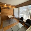 The apartment is fully equipped with a kitchen area featuring a 2-burner induction hob, refrigerator, microwave, and dishwasher, along with a Nespresso coffee maker, toaster, and other kitchen utensils. The living room includes a large-screen television and dining area, while the bathroom boasts a shower cabin, sink, bidet, and washing machine. A balcony with a view of the slopes and village enhances the comfort of this cozy getaway.