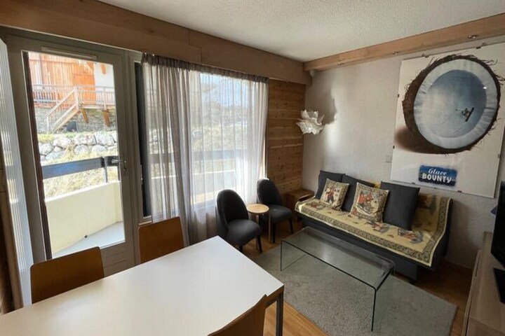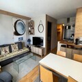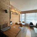 This renovated and bright studio apartment (34m²) comfortably accommodates up to 5 people. It features a variety of sleeping options, including a cabin room with a double bed, a living room with a new 160 cm Rapido sofa bed, and a mountain corner with a single bed. The apartment is non-smoking and pets are allowed. Please note, bed linens and towels are not provided, and an end-of-stay cleaning service is optional. Guests are welcome to enjoy the private parking and ski locker provided with the residence.