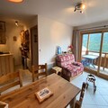 This cozy 40m² apartment, located just 30 meters from the slopes, is ideal for up to four guests. The accommodation includes one bedroom with a double bed and a mountain corner with two single bunk beds. The living room is furnished with a 3-seater sofa, a television, and a dining area, offering a comfortable space to relax after a day on the slopes. The apartment also features a south-facing terrace with stunning views of the slopes. The property is non-smoking, and pets are not allowed, ensuring a peaceful and allergy-friendly environment.
