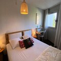 Master bedroom: 1 double bed 160x200, bedside tables, chest of drawers, window. (New Dunlopillo mattress August 2022)