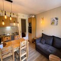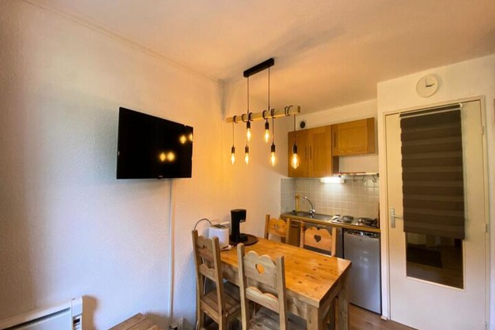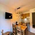 This cozy, renovated apartment accommodates 4 people with a double bedroom and a mountain corner featuring 2 bunk beds. The apartment is non-smoking and offers a balcony with a south-facing view of the slopes. It includes essential amenities like a wardrobe, chest of drawers, clothes hooks, and a ski locker. Please note, pets are not allowed, and bed linen and towels are not provided. End-of-stay cleaning is optional.