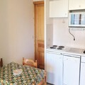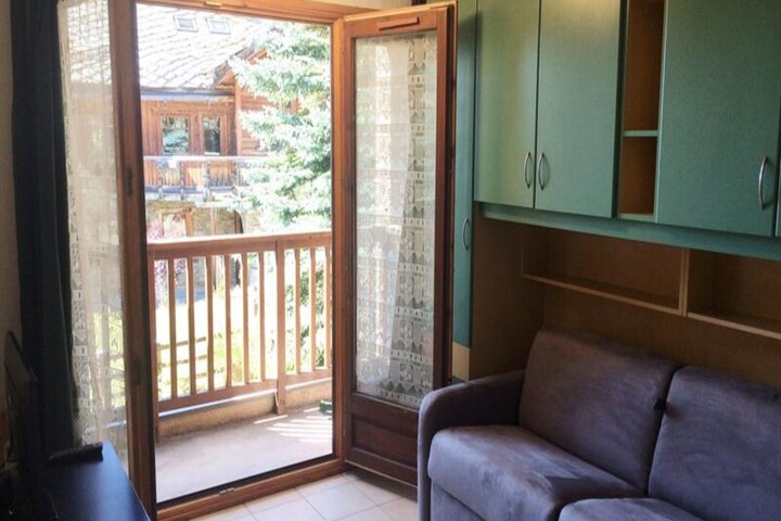 This charming apartment is designed to accommodate up to 4 guests, featuring a cozy living area with a "rapido" convertible sofa for 2 and 2 bunk beds in a separate bedroom. The apartment is pet-friendly, offering a relaxing environment for families or couples. It is non-smoking and includes a balcony with a westward view, perfect for enjoying the mountain scenery. A ski locker is available for your equipment, and covered parking is provided, with additional free spaces in front of the building. Bed linen and towels are not provided but can be arranged upon request.