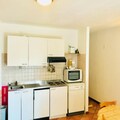 The apartment features a fully equipped kitchen with 4 electric hotplates, a small oven, a dishwasher, a refrigerator, and essential appliances. The bathroom includes a shower cabin, sink, bidet, and WC, with a washing machine available for longer stays. While there is no ski locker, the apartment’s location provides easy access to the slopes. Additional amenities, such as Wi-Fi, raclette machines, and ski passes, are available for an additional cost.