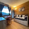 This fully renovated 26m² apartment is ideal for up to 4 guests and offers a ski-in/ski-out experience. The living area features a double sofa bed with two mattresses and a mountain corner with two single bunk beds. The apartment is pet-friendly, allowing you to bring your furry companions along for the trip. Bed linens and towels are not provided, and cleaning services are optional for an additional fee. Enjoy the comfort of the apartment with its modern amenities and cozy, well-designed spaces.