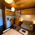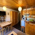 This charming mountain apartment offers a cozy retreat for up to 4 guests. The living space features a 140x190 BZ sofa bed in the main room and 2 single bunk beds tucked in a separate corner, making it ideal for families or small groups. The property is pet-friendly, allowing you to bring your furry companions on your adventure. For your convenience, the apartment comes with an outdoor parking spot accessible via remote control. The unit is also non-smoking, ensuring a fresh and pleasant environment. The south-facing balcony offers beautiful mountain views, with outdoor furniture including a table, two chairs, and two deckchairs for relaxing after a day on the slopes.