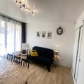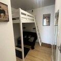 This cozy apartment, located in a quiet residence just steps from the slopes and shops, offers a mezzanine bed, a sofa bed, and a BZ sofa, accommodating up to six guests. It is a non-smoking, pet-free property, ensuring a peaceful atmosphere. The apartment includes a large wardrobe, storage space, electric towel dryers, and a hairdryer. Bed linen and towels are not provided but can be rented upon request.