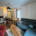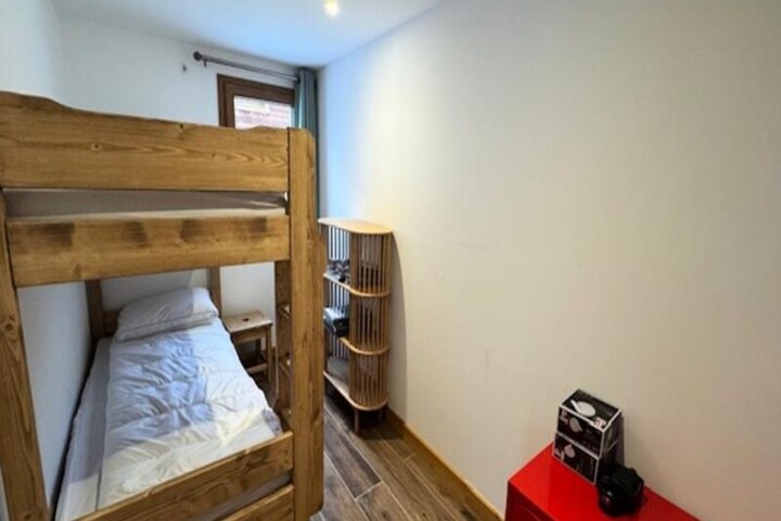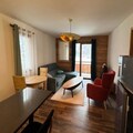Step inside this 50m² apartment and be greeted by a warm and inviting ambiance. The living room, adorned with mountain-style wooden furniture, features a comfortable corner sofa, a flat-screen TV, and direct access to the balcony through a large bay window. The fully equipped kitchen, complete with modern appliances like a dishwasher, induction hob, and oven, makes preparing meals a breeze. The apartment comfortably accommodates up to four guests, with a master bedroom featuring a plush double bed and a second room with bunk beds. A spacious walk-in shower, a washing machine, and thoughtful storage solutions add to the convenience.