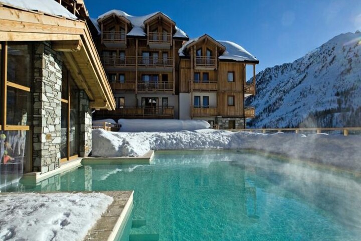 The residence boasts 122 spacious apartments, each thoughtfully designed with a private terrace or balcony to soak in the stunning views. Inside, you'll find a fully equipped kitchen, cozy living spaces, and modern amenities to ensure a comfortable stay. After a day on the slopes, unwind in the heated outdoor pool with indoor access or indulge in the luxurious spa center featuring a jacuzzi, hammam, sauna, and treatment rooms. Families will appreciate the dedicated Kids' and Teens' Clubs, offering engaging activities and supervised fun for all ages, while the Squ@t hangout provides a trendy space for teens to relax and connect.