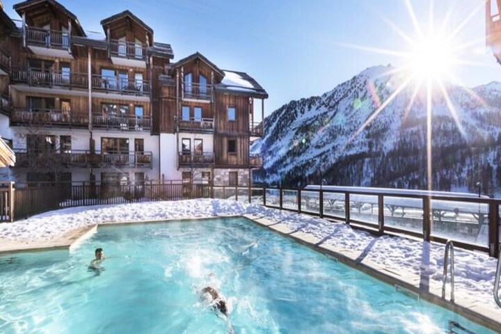 In the heart of the Hautes-Alpes, where the crisp mountain air meets the charm of alpine tradition, the MMV Le Hameau des Airelles**** Residence Club in Montgenèvre invites you to an unforgettable stay at the foot of the slopes. Surrounded by the breathtaking beauty of the French Alps, this residence blends rustic elegance with modern comfort, offering an idyllic retreat for families and friends seeking adventure and relaxation alike. With the Chalvet gondola lift just steps away, your alpine escapades begin the moment you step outside. \n\nThe residence boasts 122 spacious apartments, each thoughtfully designed with a private balcony or terrace to take in the stunning mountain views. Inside, you’ll find a fully equipped kitchen, cozy living spaces, and bedrooms tailored for comfort. After an exhilarating day on the slopes, unwind in the heated outdoor pool with indoor access or indulge in the spa center, featuring a jacuzzi, hammam, sauna, and treatment rooms. Families will appreciate the Kids’ and Teens’ Clubs, offering engaging activities and a dedicated space for young adventurers, ensuring everyone in your group has a memorable experience. \n\nMontgenèvre’s new district offers a vibrant atmosphere with easy access to local amenities and après-ski activities. Whether you’re exploring the slopes, enjoying a raclette dinner in your apartment, or relaxing in the Squ@t teen lounge, every moment is crafted for your enjoyment. With bakery services, board game rentals, and social events throughout the week, the residence ensures a seamless and delightful stay. \n\nChoose MMV Le Hameau des Airelles for your next alpine getaway and create cherished memories amidst the majestic peaks of Montgenèvre.