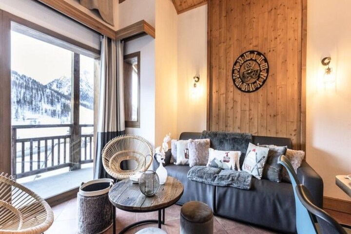 The residence boasts 122 spacious apartments, each thoughtfully designed with a private balcony or terrace to soak in the breathtaking alpine views. Inside, you'll find a fully equipped kitchen, cozy living spaces, and modern amenities to ensure your comfort. After a day on the slopes, unwind in the heated outdoor pool with indoor access or indulge in the spa center, featuring a jacuzzi, hammam, sauna, and treatment rooms. Families will appreciate the dedicated Kids' and Teens' Clubs, offering engaging activities and spaces tailored to every age group, while free Wi-Fi and a range of on-site services add to the convenience.