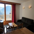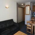 Spanning 40 square meters, the apartment comfortably accommodates up to six guests. The living room features a double sofa bed and a TV for relaxing evenings, while the private bedroom offers a cozy double bed. A separate cabin with bunk beds is perfect for children or additional guests. The kitchenette is fully equipped with ceramic hobs, a fridge/freezer, microwave, and dishwasher, ensuring you have everything needed to prepare delicious meals. The bathroom includes a bathtub for a soothing soak after a day on the slopes, and a separate toilet adds convenience. Guests also benefit from a private parking space within the residence and ski lockers for added ease.