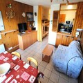 The 38m² studio is thoughtfully designed to maximize comfort and functionality. The living room features a comfortable sofa bed and entertainment options including a TV and DVD player. A separate box corner and alcove with bunk beds provide additional sleeping arrangements, making it ideal for families or groups of friends. The kitchenette is fully equipped with modern appliances, including a fridge, oven, microwave, and dishwasher, ensuring you have everything needed to prepare hearty meals after a day of exploring. The bathroom includes a shower and toilet, and durable bed linen is included during winter rentals for added convenience.