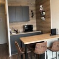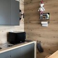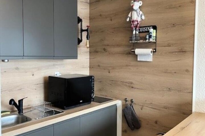 Designed to accommodate up to four guests, the 27m² studio is thoughtfully equipped for comfort and convenience. The living area features a double sofa bed and a flat-screen TV, while the alcove offers two snug bunk beds, perfect for families or small groups. The kitchenette includes all the essentials, from electric hobs to a microwave and oven, making it easy to prepare meals after a day on the slopes. The bathroom, complete with a bathtub and washing machine, ensures a comfortable stay, while the pet-friendly policy means your furry friends are welcome too.