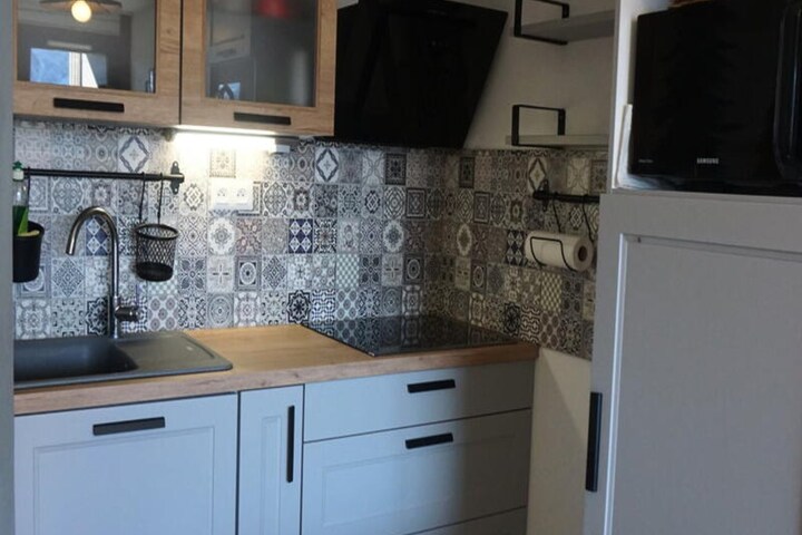 The 27m² studio is thoughtfully designed to maximize comfort and functionality. The living room features a double sofa bed and a pull-out sofa with storage, while a separate sleeping area includes two bunk beds, making it ideal for families or small groups. The compact yet fully equipped kitchen comes with four electric hotplates, a microwave, and a fridge, allowing you to prepare meals with ease. After a day of exploring, unwind in the modern bathroom with a refreshing shower. For added convenience, HD TV and pet-friendly accommodations ensure everyone feels at home.
