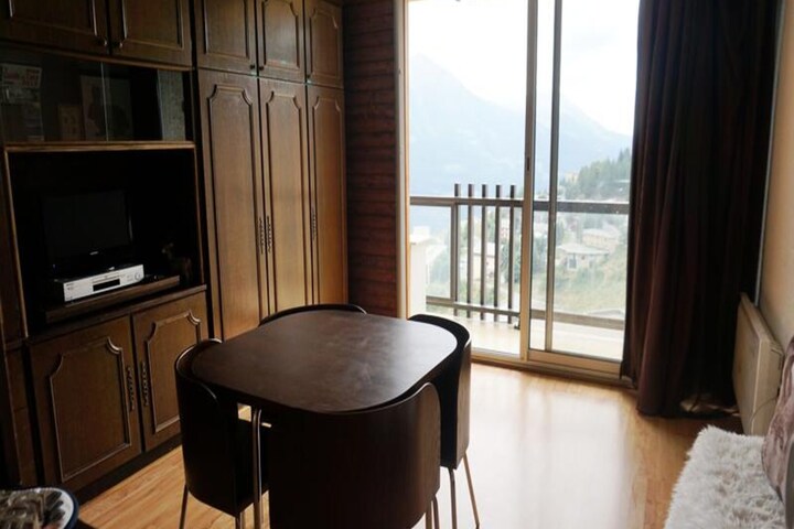 The 23m² studio is thoughtfully designed to maximize comfort and functionality. The entrance features a mountain corner with a bunk bed, while the living room includes a convenient double Murphy bed that folds away to create more space during the day. The kitchenette is fully equipped with modern appliances, including a fridge, microwave, dishwasher, oven, and two electric hobs, making it easy to prepare meals after a day of adventure. Additional amenities include a TV, DVD player, a bathroom with a shower and washing machine, and a ski locker for your convenience.