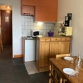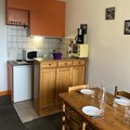 Inside, the studio is thoughtfully designed for comfort and convenience. The sleeping alcove features bunk beds, while the living room includes a comfortable sofa bed, making it ideal for families or small groups. The well-equipped kitchen invites you to prepare hearty meals after a day of exploring, and the bathroom with a bathtub offers a relaxing space to unwind. A separate WC and a ski locker add to the practicality of the apartment, ensuring a hassle-free stay.